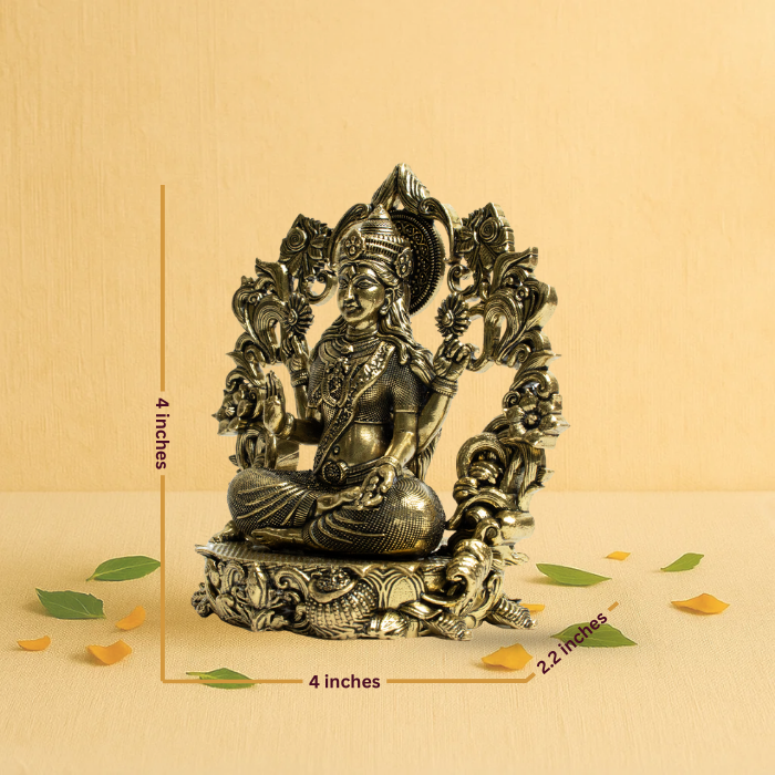 Brass Lakshmi Seated on Sofa Idol 4" – Seated in Royal Court Setting