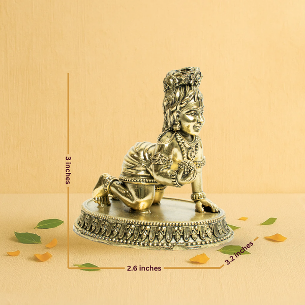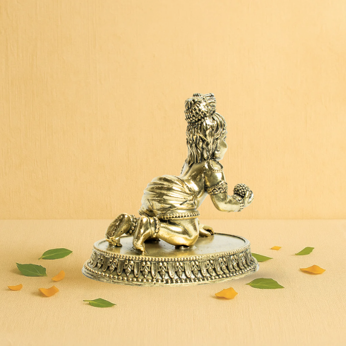 Gifting this brass Laddu Gopal idol for newborns blesses them with love, happiness, and divine protection, symbolizing a pure start filled with joy and positivity.
