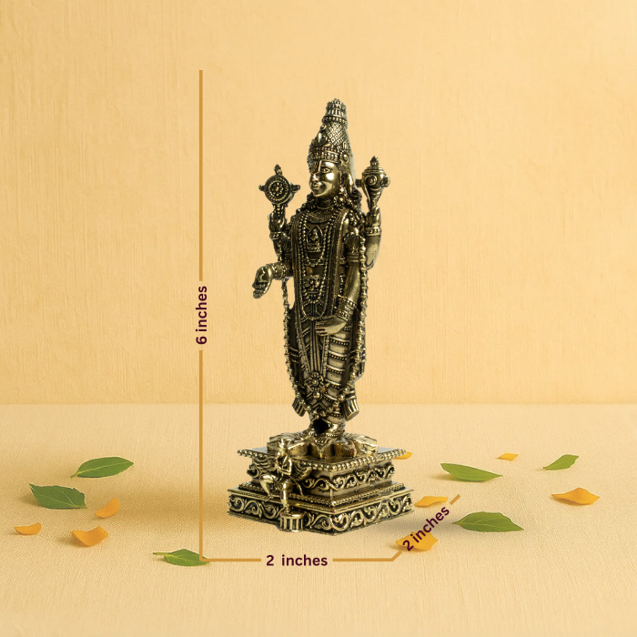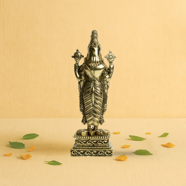 This exquisite brass Vishnu idol provides a sense of calm and protection, making your home a sanctuary against daily stressors. The Abhaya Mudra gesture assures safety and peace, helping you find tranquility in your sacred space.